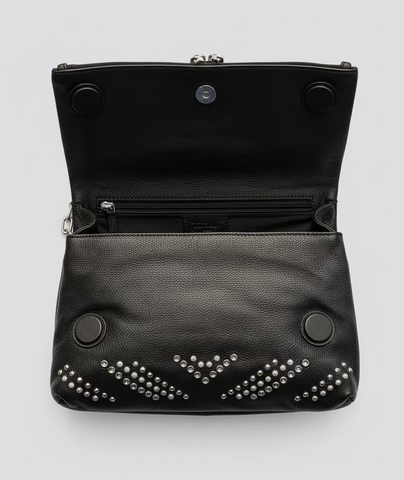 Expertly crafted from 100% leather, by Zadig & Voltaire Handbag features triple sections with security zipper section, multiple pockets, decorative chain strap, adding convenience to style.