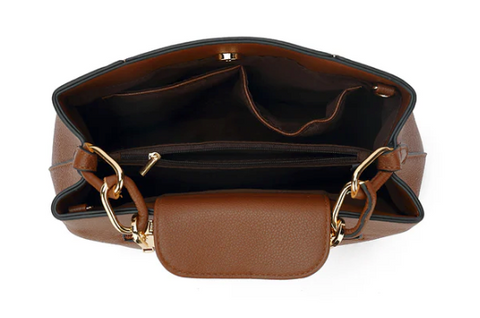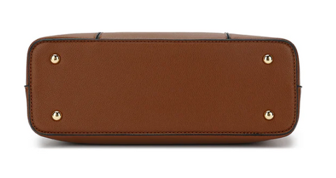 Crafted from high-quality faux leather, 12"W x 8.25"H x4.5"DSnap closureCenter zip compartmentBack zip pocketsFour protective feet at baseInside lining with 2 open/ 1 zip pocket