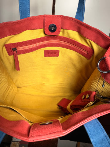 SS102 Leather and wool plaid shopper