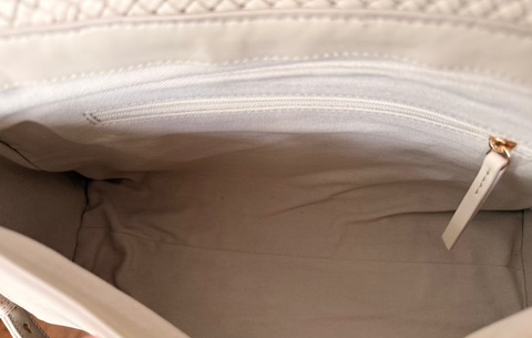 Function meets flair in this tote with premium lamb leather intricate weaving and tailored fringe.The soft inner lining makes organization effortless.
