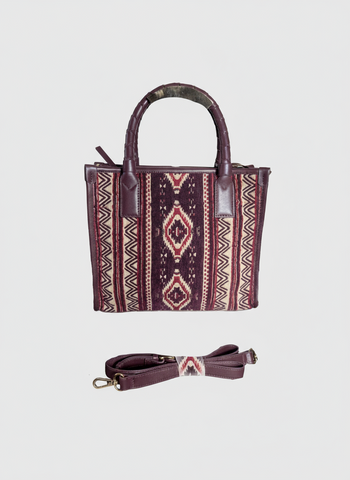 Function meets flair in this tote with premium cow leather and patterned wool weave. The soft inner lining makes organization effortless.